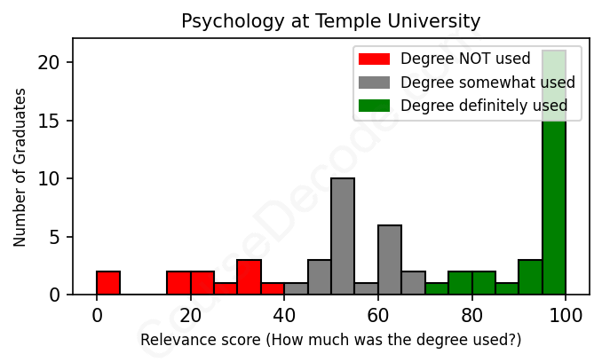 First, some facts. Of the Psychology graduates from Temple University we've analyzed , here's how many have used (or NOT used) their degree in their career: