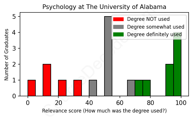 First, some facts. Of the Psychology graduates from The University of Alabama we've analyzed , here's how many have used (or NOT used) their degree in their career: