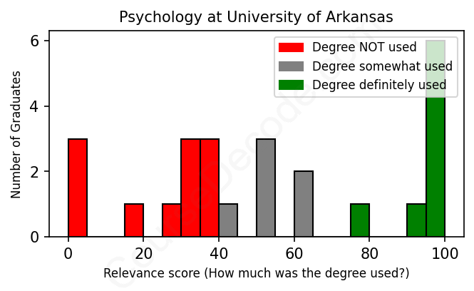 First, some facts. Of the Psychology graduates from University of Arkansas we've analyzed , here's how many have used (or NOT used) their degree in their career: