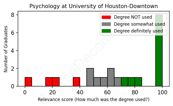 First, some facts. Of the Psychology graduates from University of Houston-Downtown we've analyzed , here's how many have used (or NOT used) their degree in their career: