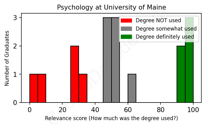 First, some facts. Of the Psychology graduates from University of Maine we've analyzed , here's how many have used (or NOT used) their degree in their career: