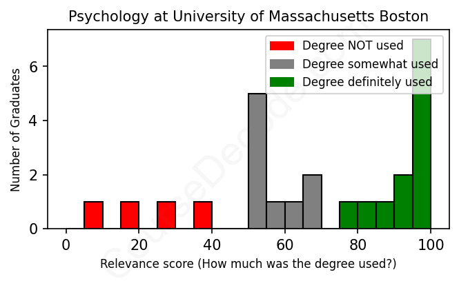 First, some facts. Of the Psychology graduates from University of Massachusetts Boston we've analyzed , here's how many have used (or NOT used) their degree in their career: