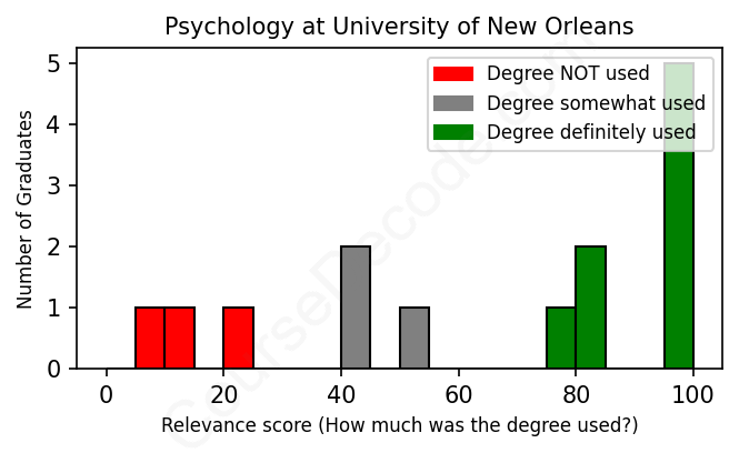 First, some facts. Of the Psychology graduates from University of New Orleans we've analyzed , here's how many have used (or NOT used) their degree in their career: