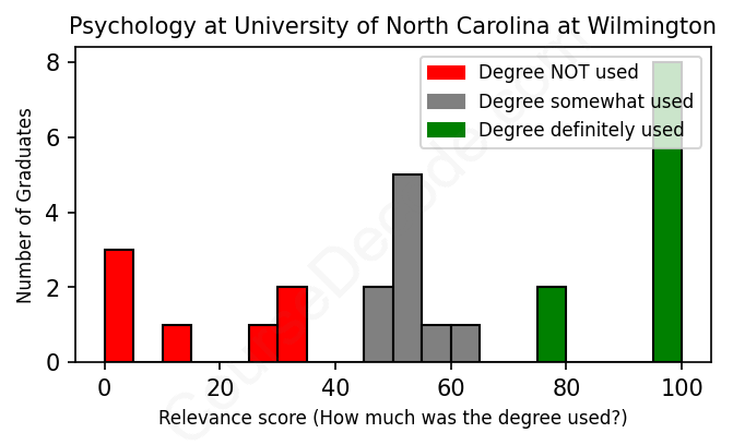 First, some facts. Of the Psychology graduates from University of North Carolina at Wilmington we've analyzed , here's how many have used (or NOT used) their degree in their career: