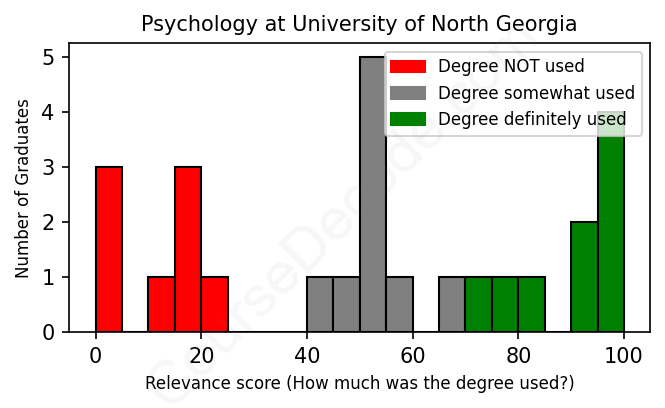 First, some facts. Of the Psychology graduates from University of North Georgia we've analyzed , here's how many have used (or NOT used) their degree in their career: