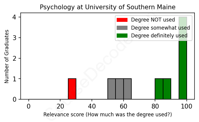 First, some facts. Of the Psychology graduates from University of Southern Maine we've analyzed , here's how many have used (or NOT used) their degree in their career: