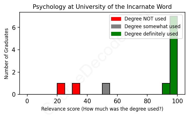 First, some facts. Of the Psychology graduates from University of the Incarnate Word we've analyzed , here's how many have used (or NOT used) their degree in their career: