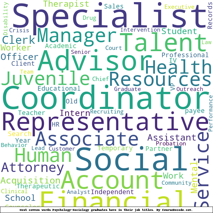 Here is a visual representation of the most common words in job titles for Psychology, Sociology graduates: