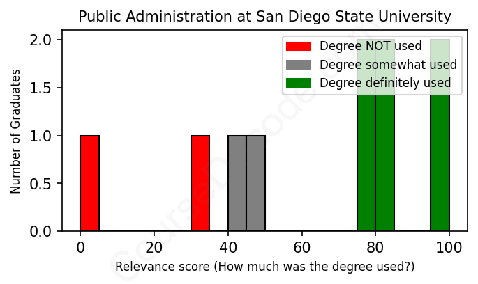 First, some facts. Of the Public Administration graduates from San Diego State University we've analyzed , here's how many have used (or NOT used) their degree in their career: