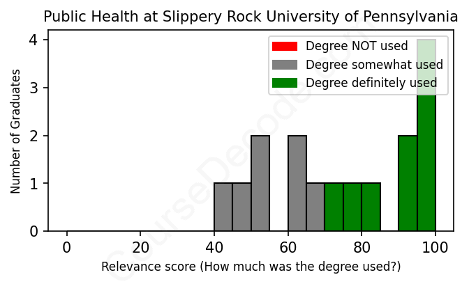 First, some facts. Of the Public Health graduates from Slippery Rock University of Pennsylvania we've analyzed , here's how many have used (or NOT used) their degree in their career: