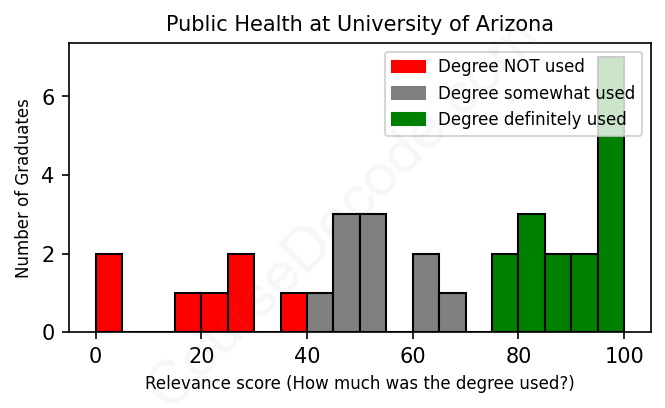First, some facts. Of the Public Health graduates from University of Arizona we've analyzed , here's how many have used (or NOT used) their degree in their career: