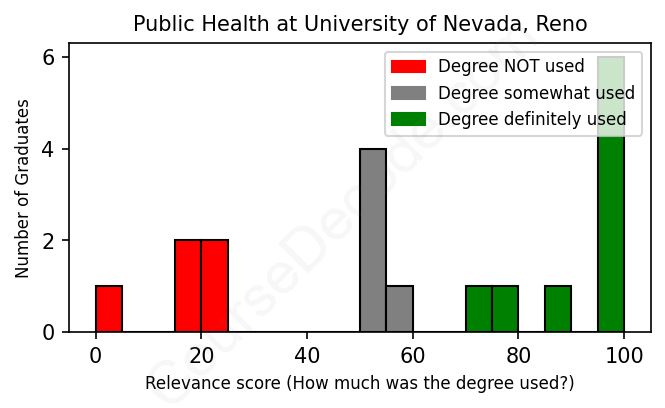 First, some facts. Of the Public Health graduates from University of Nevada, Reno we've analyzed , here's how many have used (or NOT used) their degree in their career: