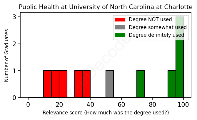 First, some facts. Of the Public Health graduates from University of North Carolina at Charlotte we've analyzed , here's how many have used (or NOT used) their degree in their career: