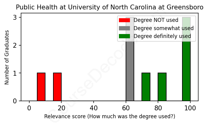 First, some facts. Of the Public Health graduates from University of North Carolina at Greensboro we've analyzed , here's how many have used (or NOT used) their degree in their career:
