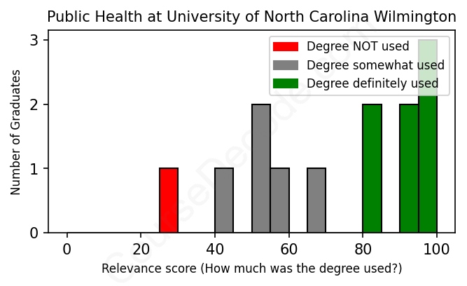 First, some facts. Of the Public Health graduates from University of North Carolina Wilmington we've analyzed , here's how many have used (or NOT used) their degree in their career: