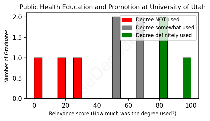 First, some facts. Of the Public Health Education and Promotion graduates from University of Utah we've analyzed , here's how many have used (or NOT used) their degree in their career: