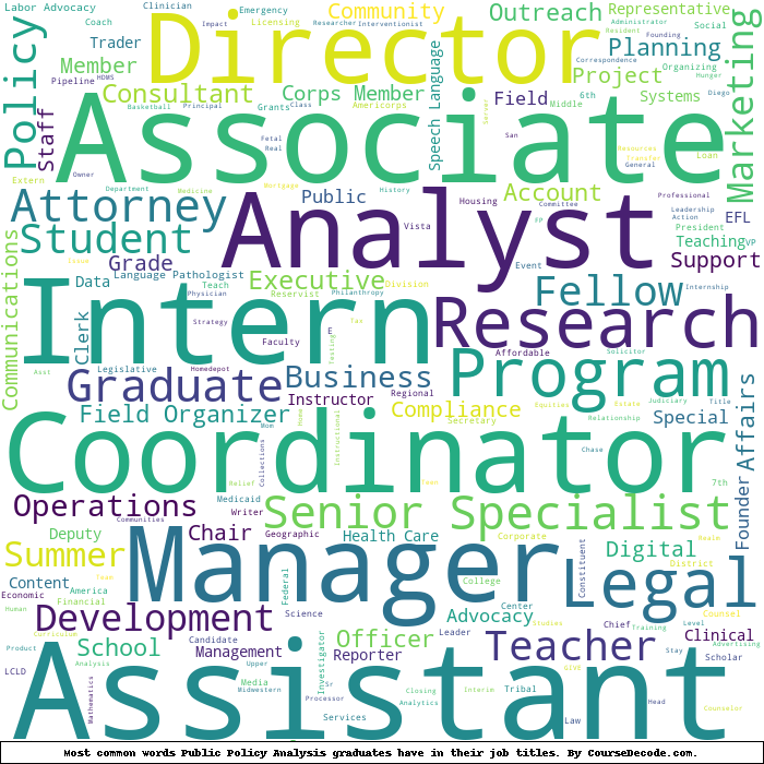 Here is a visual representation of the most common words in job titles for Public Policy Analysis graduates: