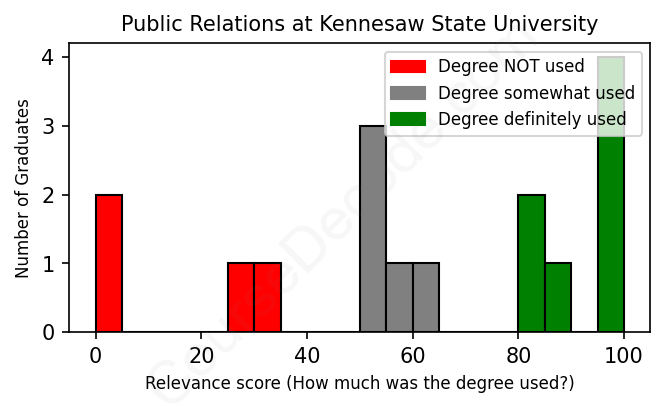 First, some facts. Of the Public Relations graduates from Kennesaw State University we've analyzed , here's how many have used (or NOT used) their degree in their career: