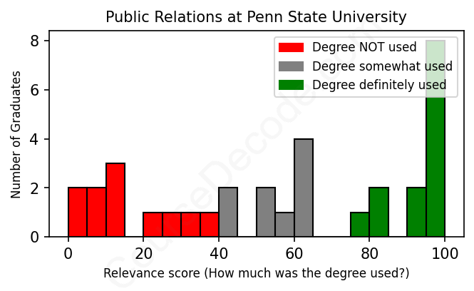 First, some facts. Of the Public Relations graduates from Penn State University we've analyzed , here's how many have used (or NOT used) their degree in their career: