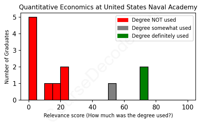 First, some facts. Of the Quantitative Economics graduates from United States Naval Academy we've analyzed , here's how many have used (or NOT used) their degree in their career: