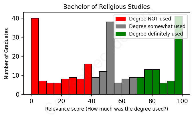 First, some facts. Of the Religious Studies graduates we've analyzed , here's how many have used (or NOT used) their degree in their career: