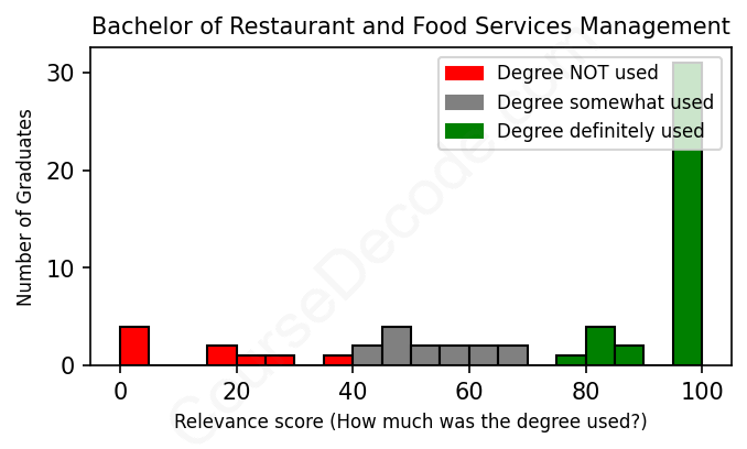 First, some facts. Of the Restaurant and Food Services Management graduates we've analyzed , here's how many have used (or NOT used) their degree in their career: