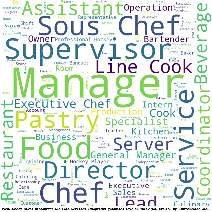 Here is a visual representation of the most common words in job titles for Restaurant and Food Services Management graduates: