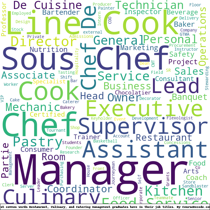 Here is a visual representation of the most common words in job titles for Restaurant, Culinary, and Catering Management graduates: