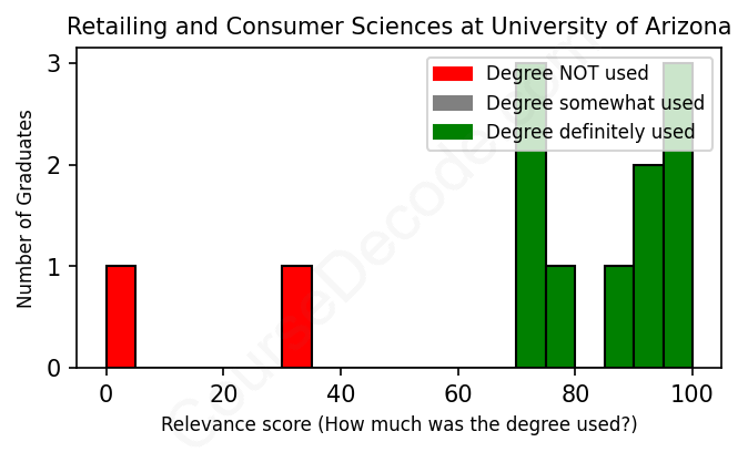 First, some facts. Of the Retailing and Consumer Sciences graduates from University of Arizona we've analyzed , here's how many have used (or NOT used) their degree in their career: