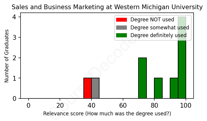 First, some facts. Of the Sales and Business Marketing graduates from Western Michigan University we've analyzed , here's how many have used (or NOT used) their degree in their career: