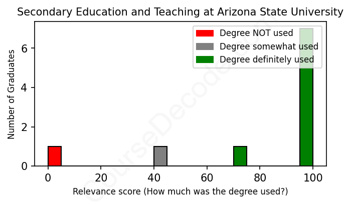 First, some facts. Of the Secondary Education and Teaching graduates from Arizona State University we've analyzed , here's how many have used (or NOT used) their degree in their career: