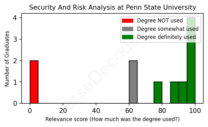 First, some facts. Of the Security And Risk Analysis graduates from Penn State University we've analyzed , here's how many have used (or NOT used) their degree in their career: