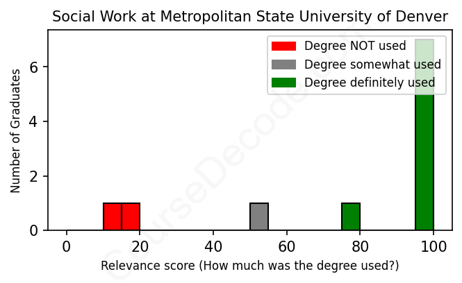 First, some facts. Of the Social Work graduates from Metropolitan State University of Denver we've analyzed , here's how many have used (or NOT used) their degree in their career: