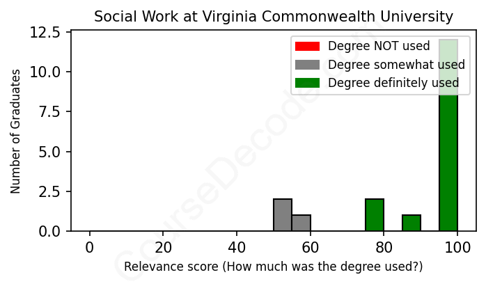 First, some facts. Of the Social Work graduates from Virginia Commonwealth University we've analyzed , here's how many have used (or NOT used) their degree in their career: