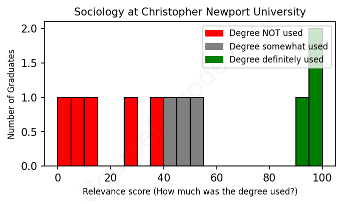 First, some facts. Of the Sociology graduates from Christopher Newport University we've analyzed , here's how many have used (or NOT used) their degree in their career: