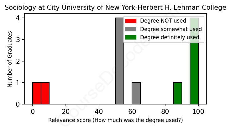 First, some facts. Of the Sociology graduates from City University of New York-Herbert H. Lehman College we've analyzed , here's how many have used (or NOT used) their degree in their career: