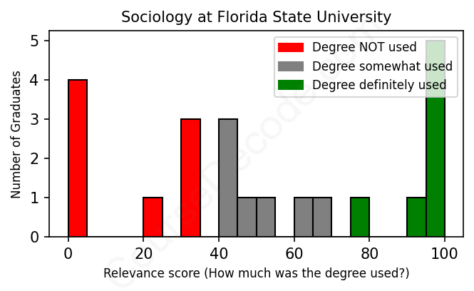 First, some facts. Of the Sociology graduates from Florida State University we've analyzed , here's how many have used (or NOT used) their degree in their career: