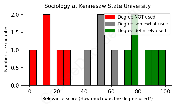 First, some facts. Of the Sociology graduates from Kennesaw State University we've analyzed , here's how many have used (or NOT used) their degree in their career: