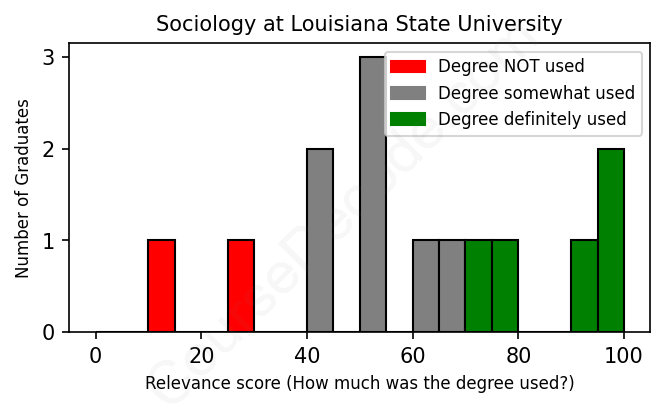 First, some facts. Of the Sociology graduates from Louisiana State University we've analyzed , here's how many have used (or NOT used) their degree in their career: