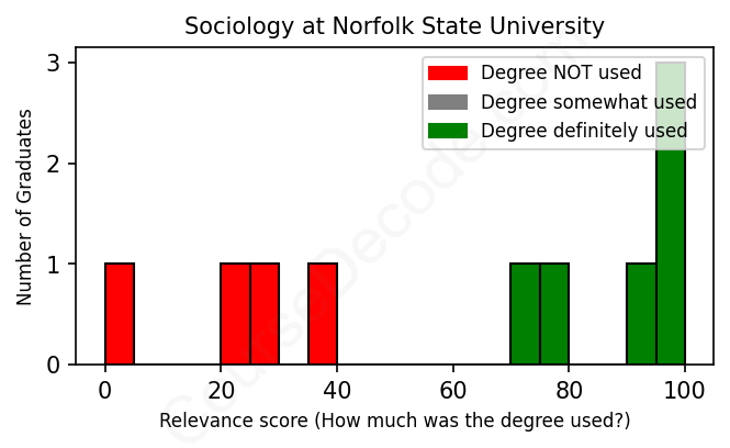 First, some facts. Of the Sociology graduates from Norfolk State University we've analyzed , here's how many have used (or NOT used) their degree in their career: