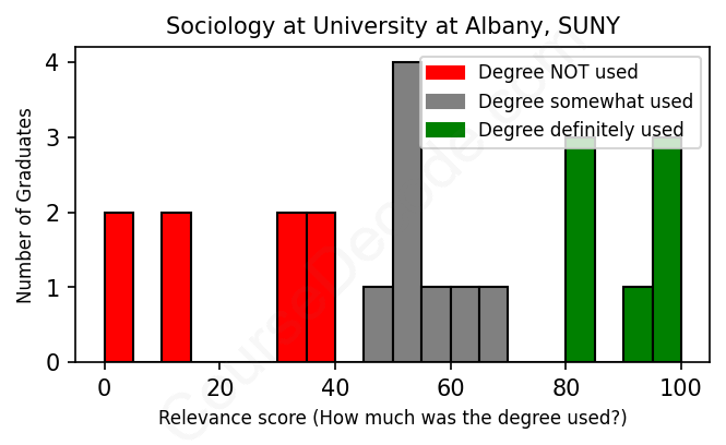 First, some facts. Of the Sociology graduates from University at Albany, SUNY we've analyzed , here's how many have used (or NOT used) their degree in their career:
