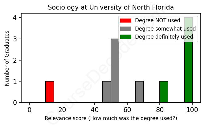 First, some facts. Of the Sociology graduates from University of North Florida we've analyzed , here's how many have used (or NOT used) their degree in their career: