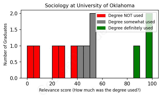 First, some facts. Of the Sociology graduates from University of Oklahoma we've analyzed , here's how many have used (or NOT used) their degree in their career: