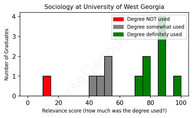 First, some facts. Of the Sociology graduates from University of West Georgia we've analyzed , here's how many have used (or NOT used) their degree in their career: