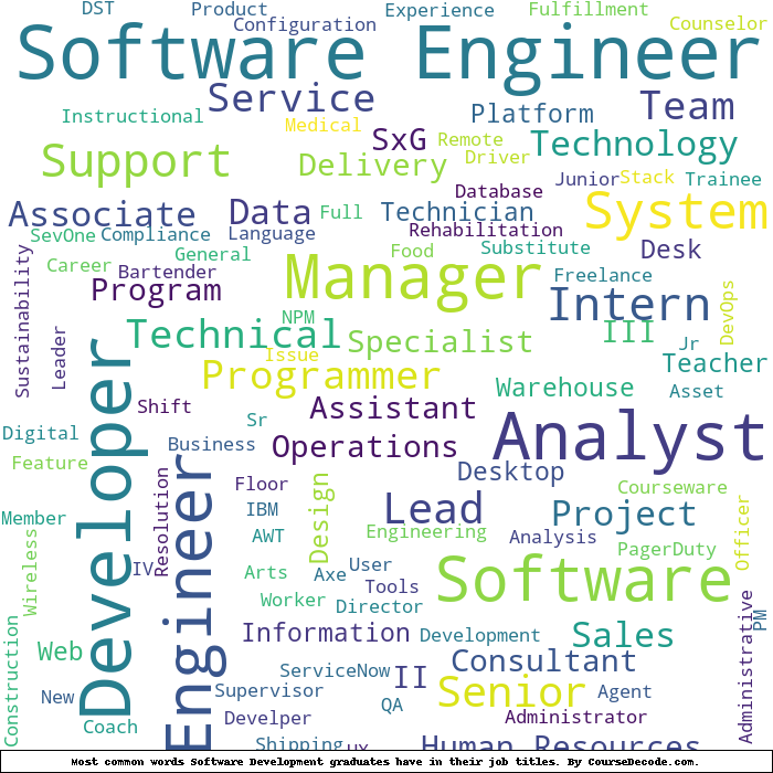 Here is a visual representation of the most common words in job titles for Software Development graduates: