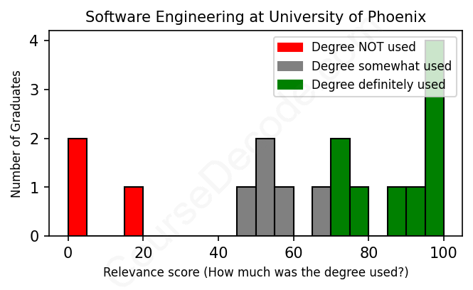First, some facts. Of the Software Engineering graduates from University of Phoenix we've analyzed , here's how many have used (or NOT used) their degree in their career: