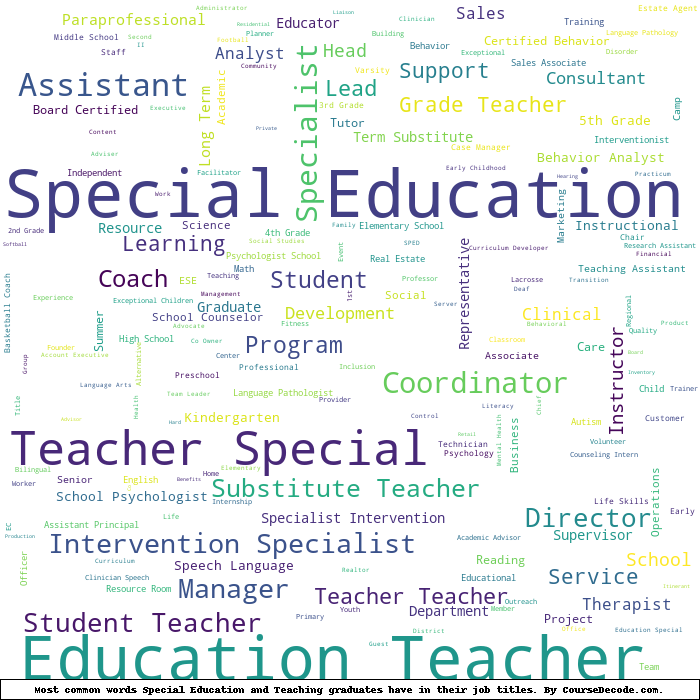 Here is a visual representation of the most common words in job titles for Special Education and Teaching graduates: