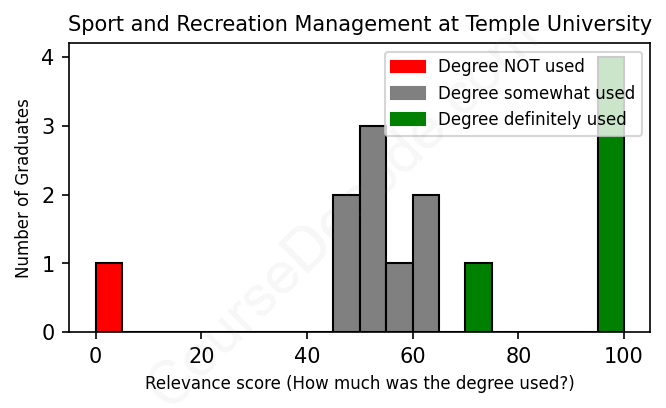 First, some facts. Of the Sport and Recreation Management graduates from Temple University we've analyzed , here's how many have used (or NOT used) their degree in their career: