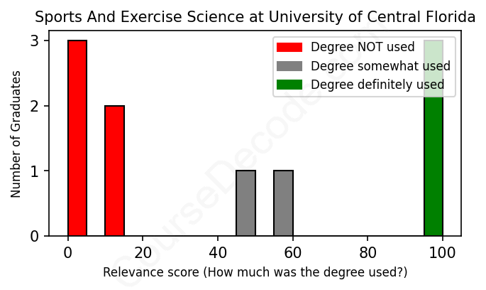 First, some facts. Of the Sports And Exercise Science graduates from University of Central Florida we've analyzed , here's how many have used (or NOT used) their degree in their career: