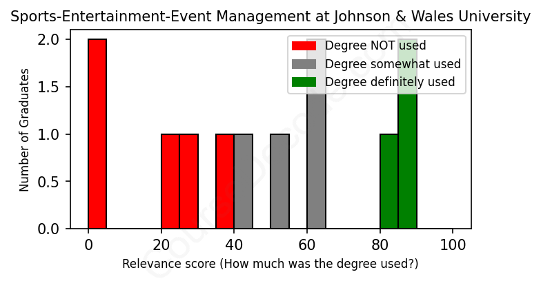 First, some facts. Of the Sports-Entertainment-Event Management graduates from Johnson & Wales University we've analyzed , here's how many have used (or NOT used) their degree in their career: